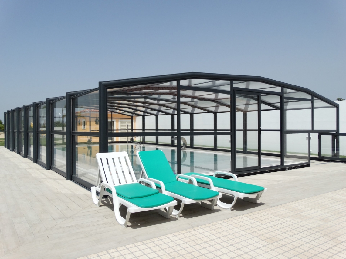 Pela sua altura, esta cobertura dá-lhe o conforto de estar abrigado das temperaturas exteriores menos agradáveis ao banho. O uso da piscina é prolongado consideravelmente.