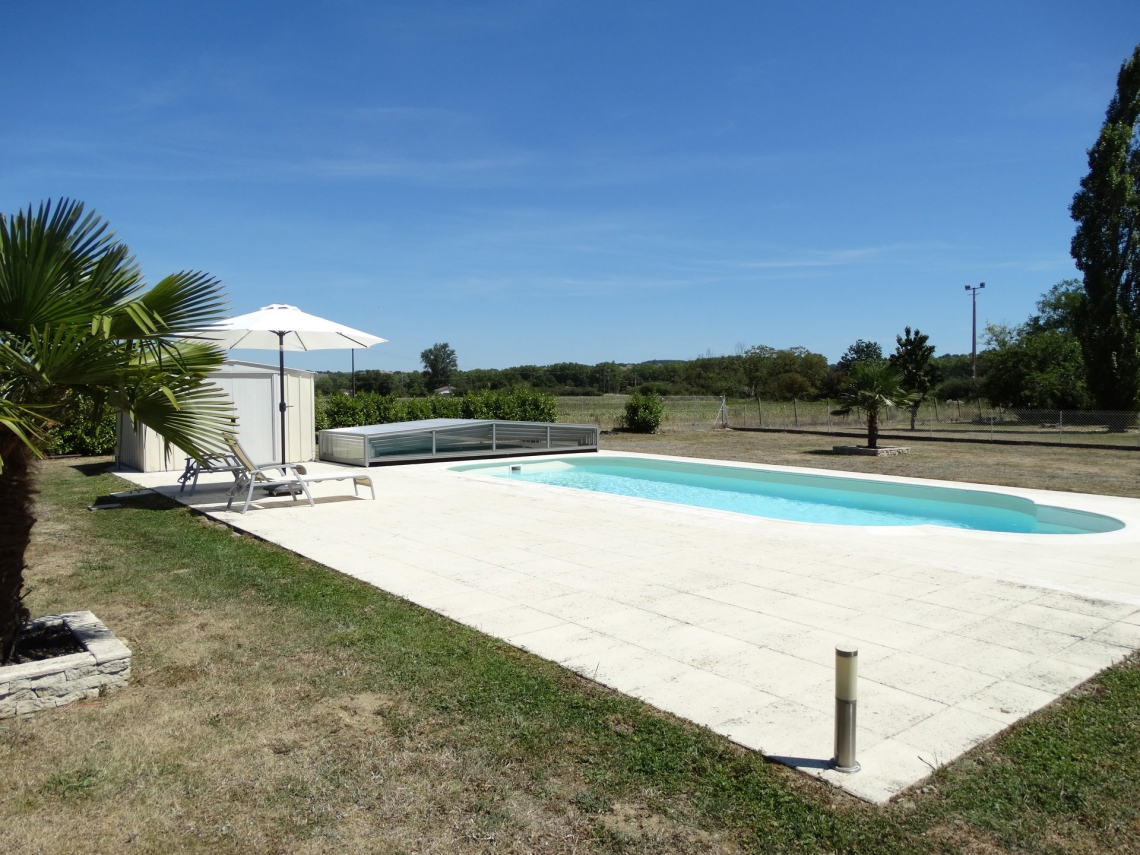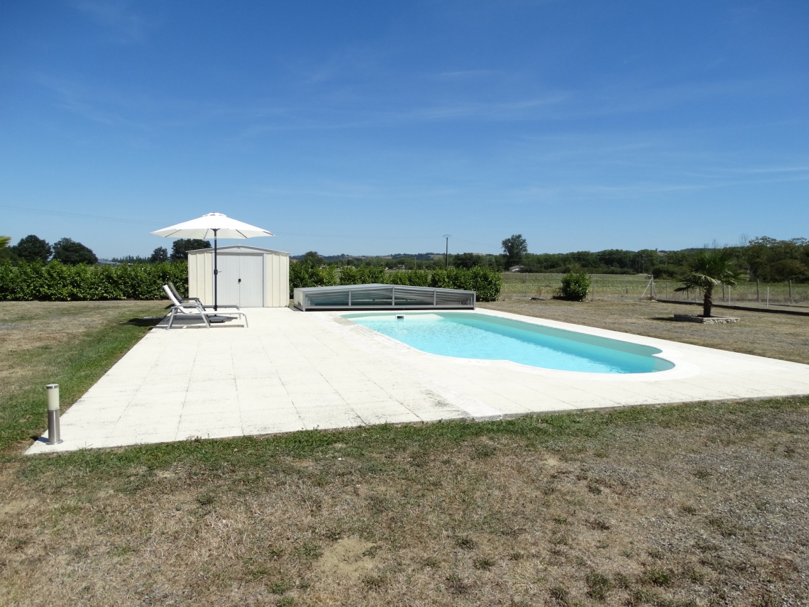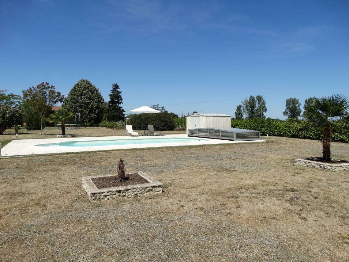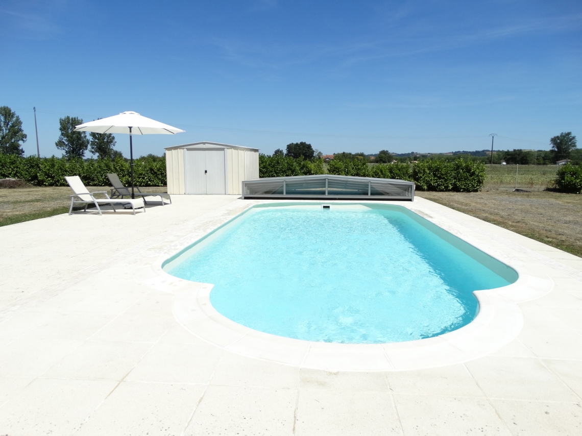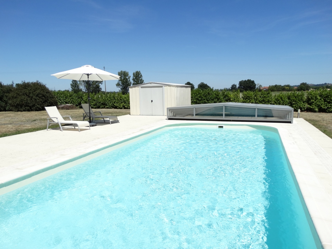 Cobertura baixa Acces, 5 módulos telescópicos; topos sem aberturas; laterais em vidro temperado 4mm; teto policarbonato alveolar 8mm UV duas faces; ancoragem ao solo; aluminio lacado cinza médio.