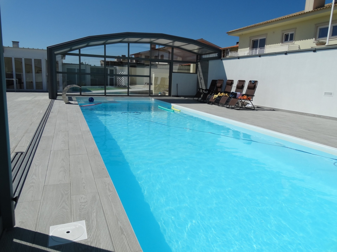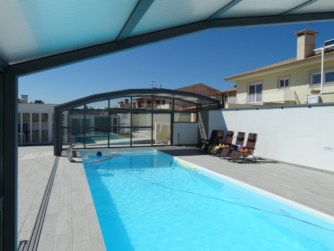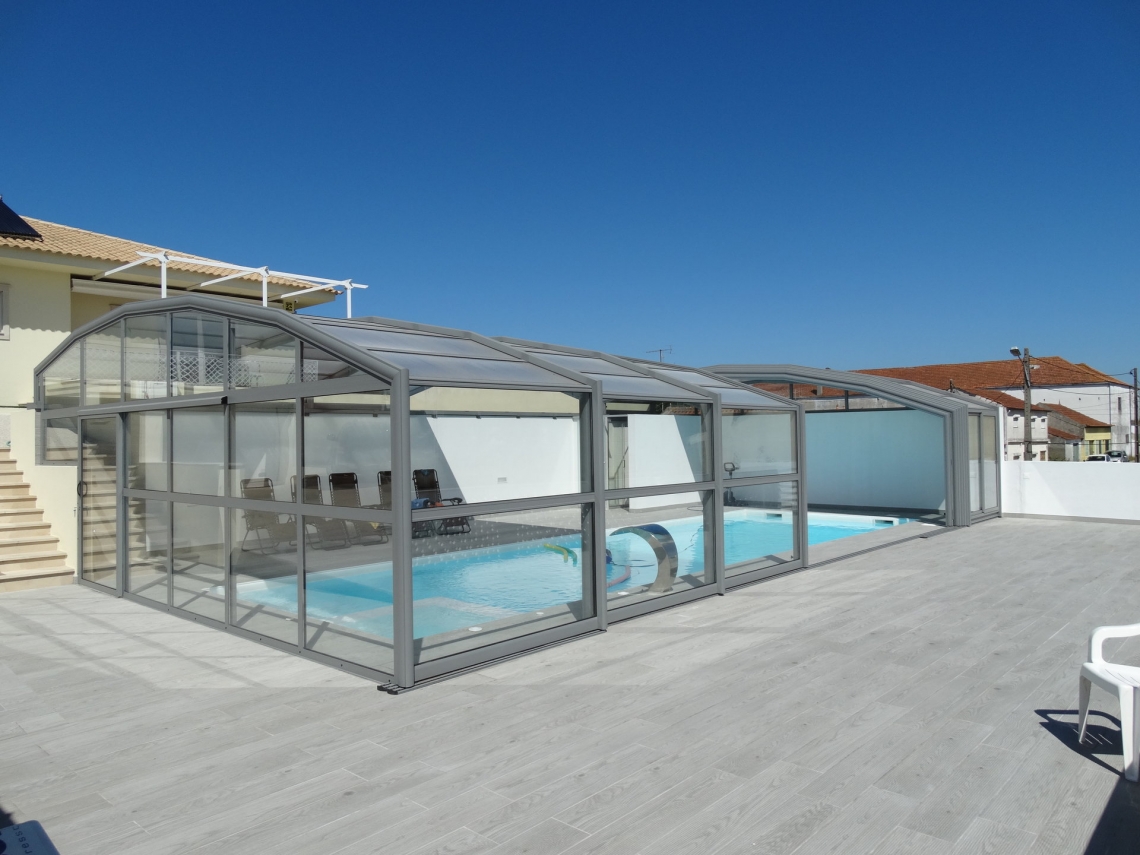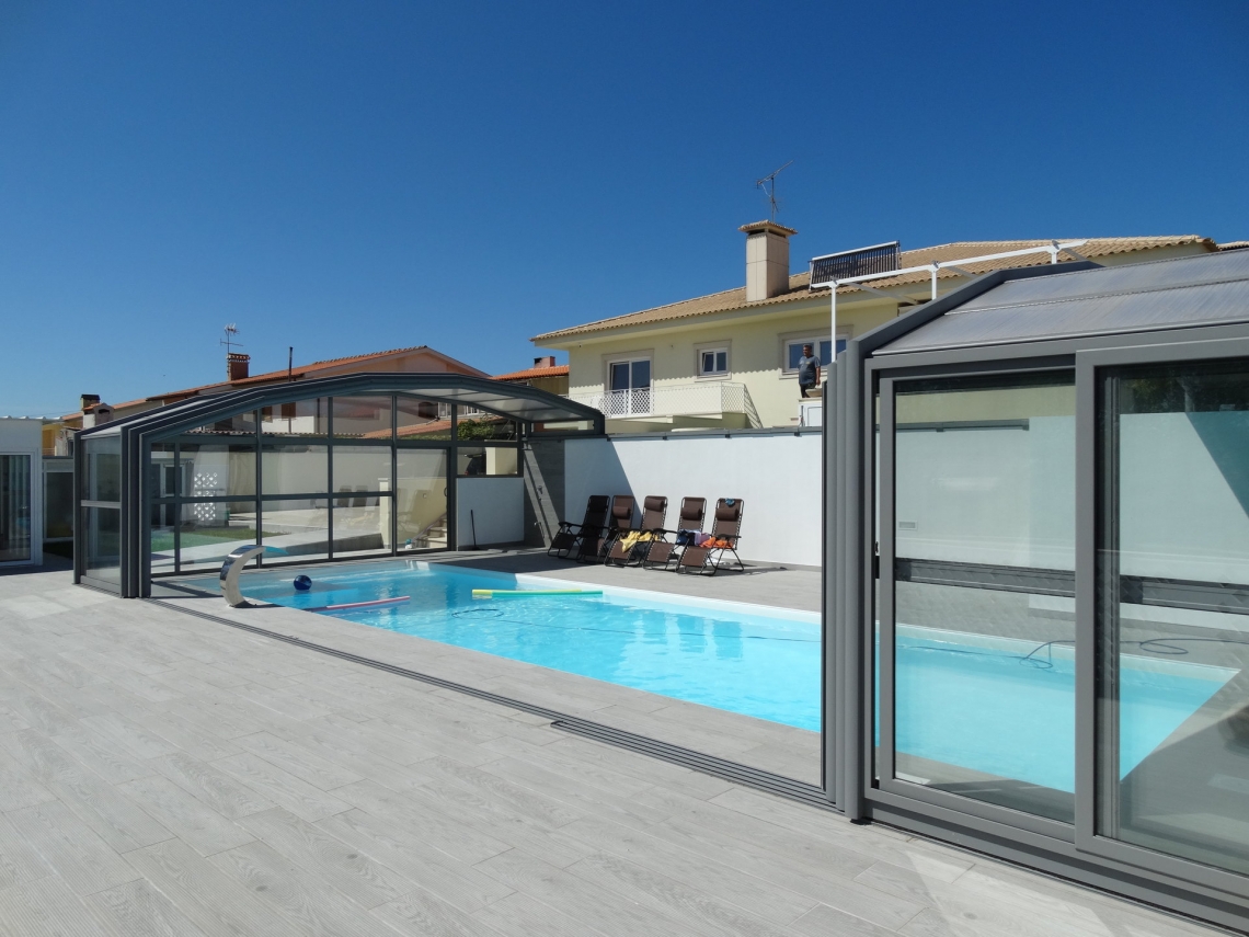Local de instalação muito ventoso mas com uma excelente exposição solar. Uma piscina com pouca utilização tornou-se num novo espaço de convivio familiar e numa verdadeira piscina interior quando o tempo assim o exige!