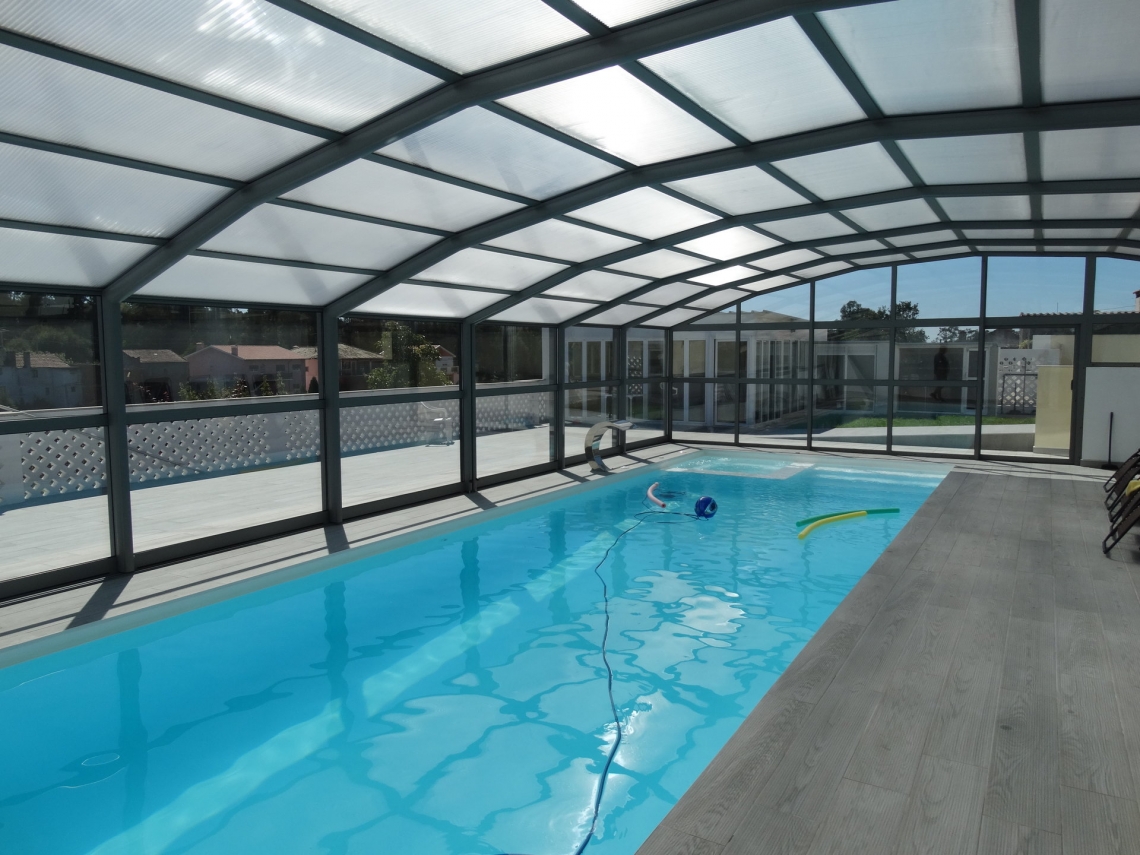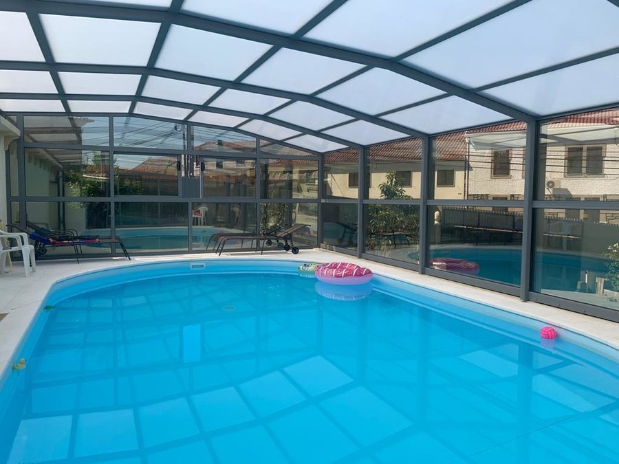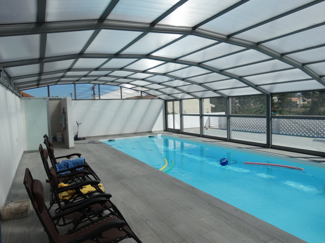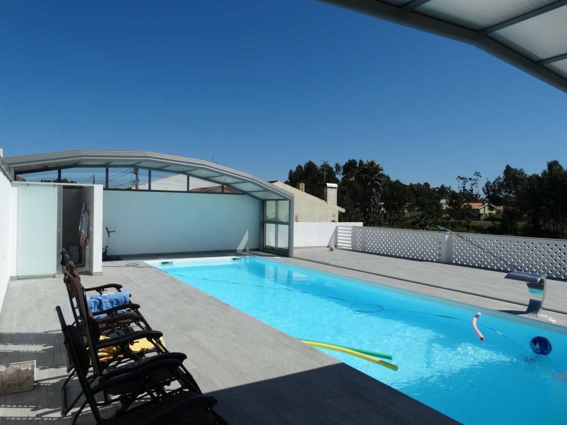 Local de instalação muito ventoso mas com uma excelente exposição solar. Uma piscina com pouca utilização tornou-se num novo espaço de convivio familiar e numa verdadeira piscina interior quando o tempo assim o exige!