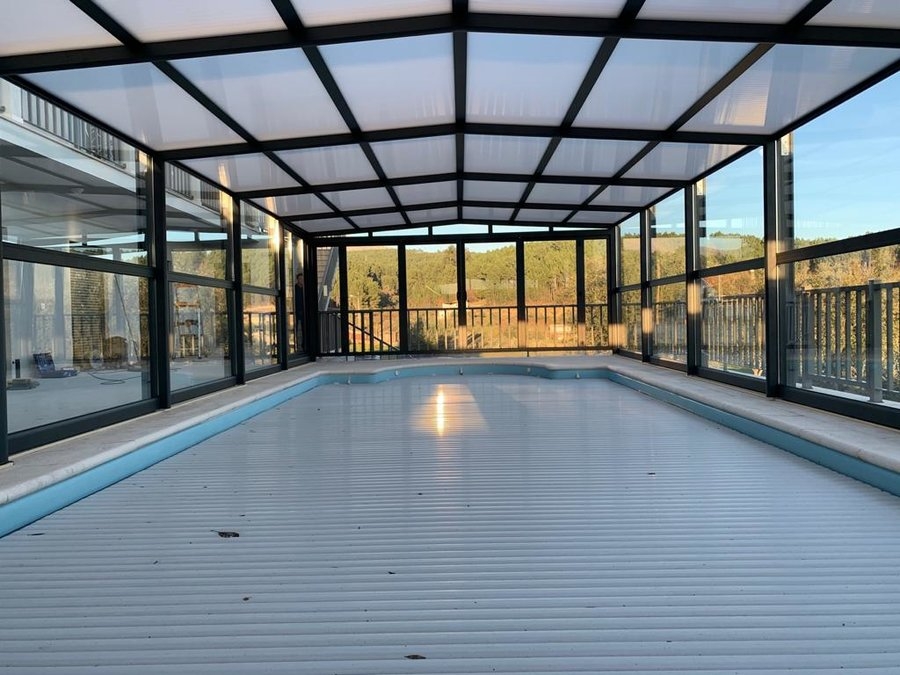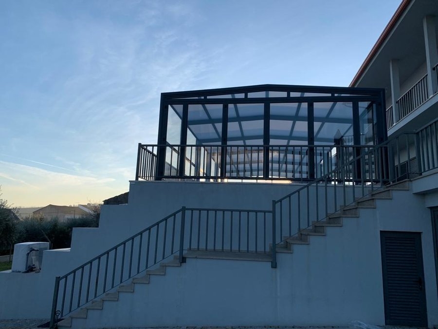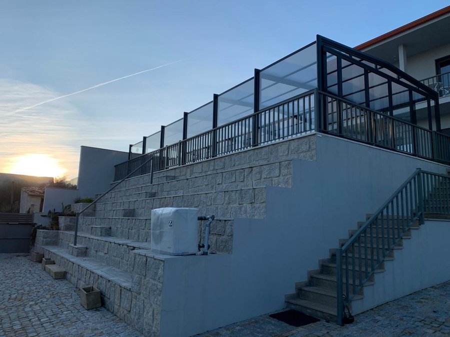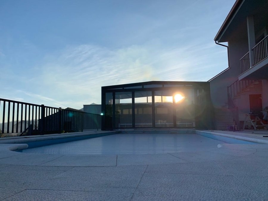 Cor do aluminio antracite; teto em policarbonato alveolar de 16mm; paredes em vidro duplo 4/12/4 ... materais de qualidade superior e que irão dar o conforto térmico e temperatura da água necessários para uma utilização durante todo o ano!
